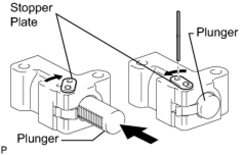 (a) Move the stopper plate upward to release the lock, and push the plunger deep into the tensioner.