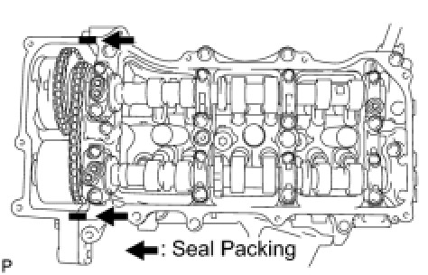 (b) Apply seal packing in a continuous line to the timing chain cover as shown in the following illustration.