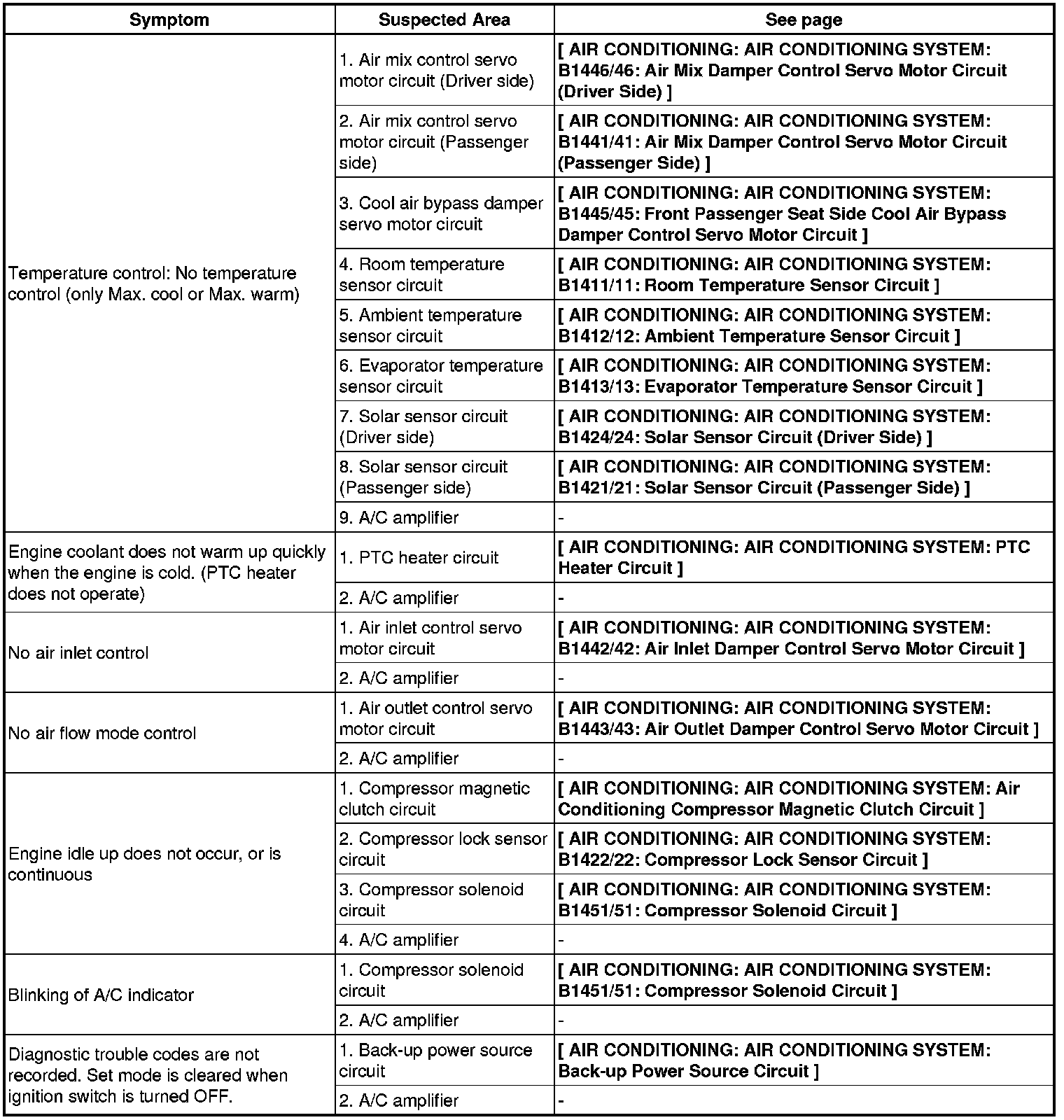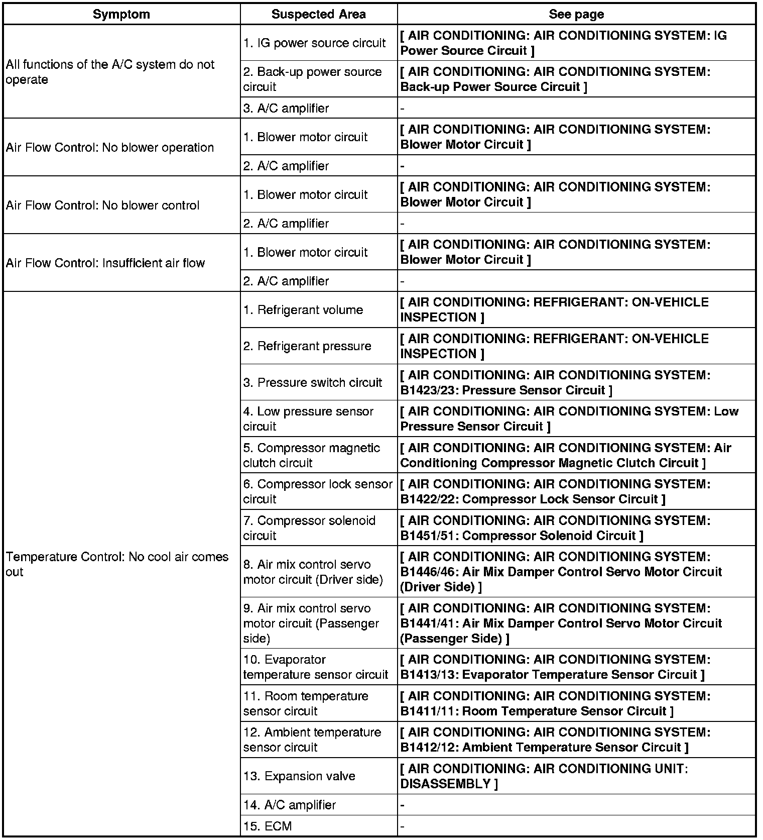 AIR CONDITIONING: AIR CONDITIONING SYSTEM: PROBLEM SYMPTOMS TABLE