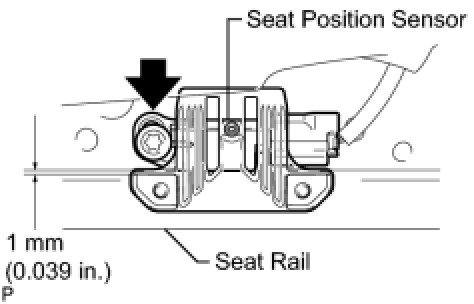 Be sure that a clearance between the seat position sensor and the seat rail is within 0.6 mm (0.023 in.) to 1.4 mm (0.055 in.).