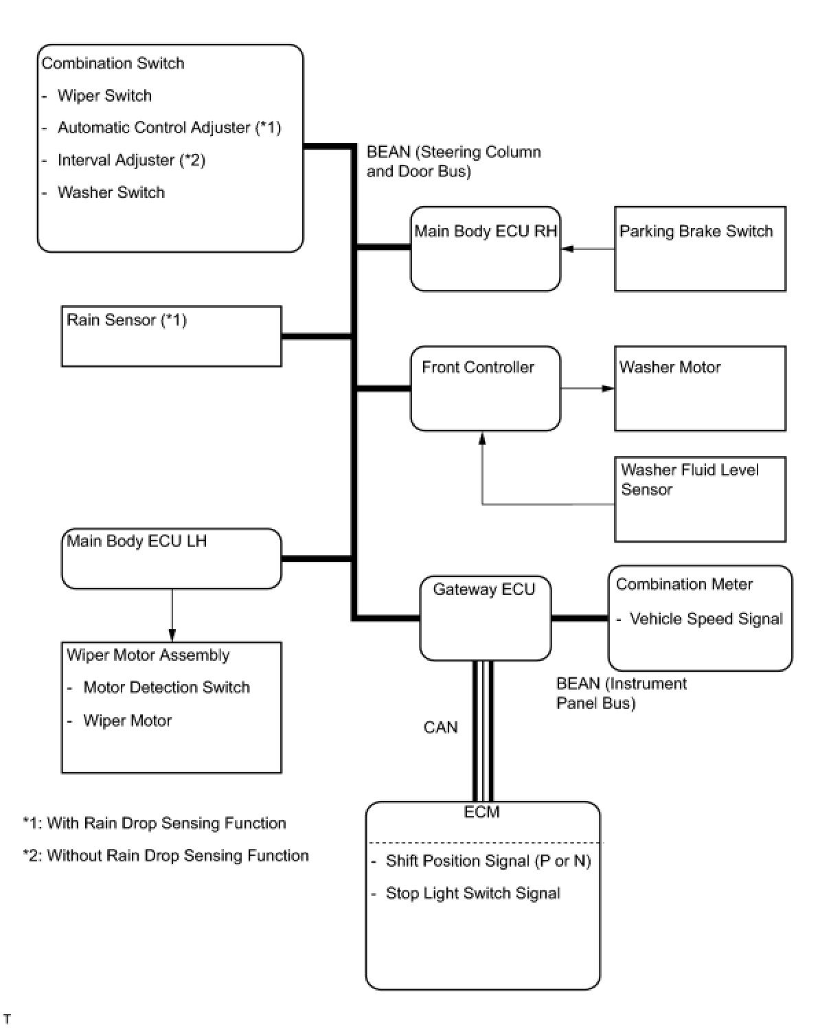 * Wiper operation is controlled by the main body ECU LH (cowl side J/B LH).