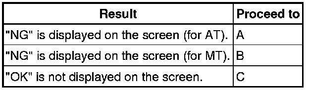 "OK" (received) and "NG" (not received) appear on the screen according to vehicle operating conditions.