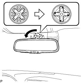 (b) Turn the inner rear view mirror assembly in the direction indicated by the arrow in the illustration to disengage the claw and remove the inner rear view mirror assembly.