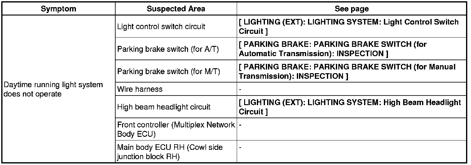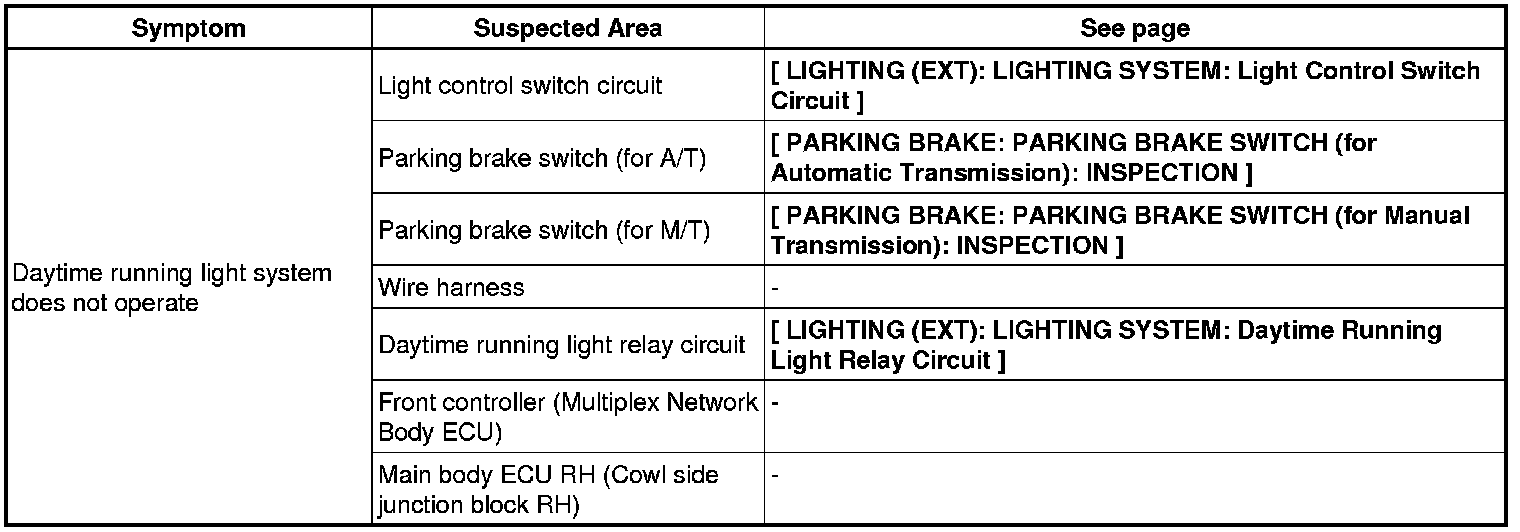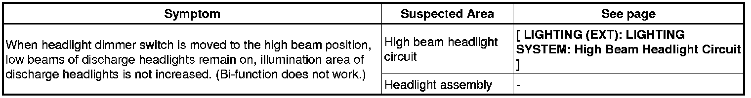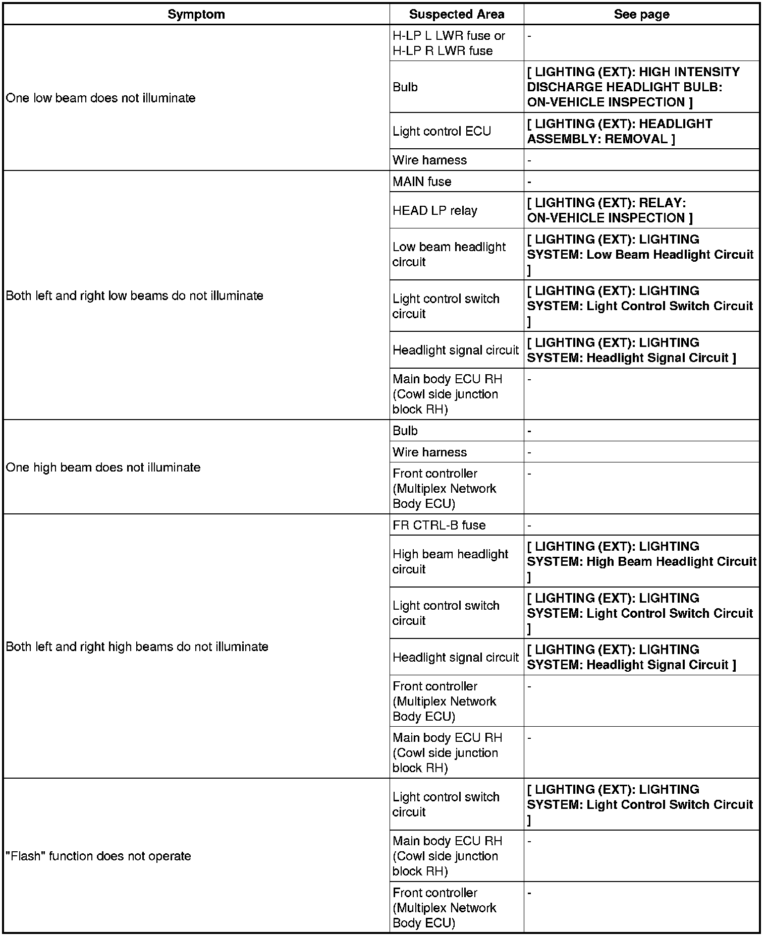LIGHTING (EXT): LIGHTING SYSTEM: PROBLEM SYMPTOMS TABLE
