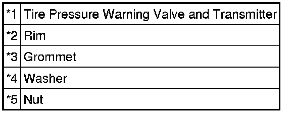 * Always use a new grommet, washer and nut when installing the tire pressure warning valve and transmitter.