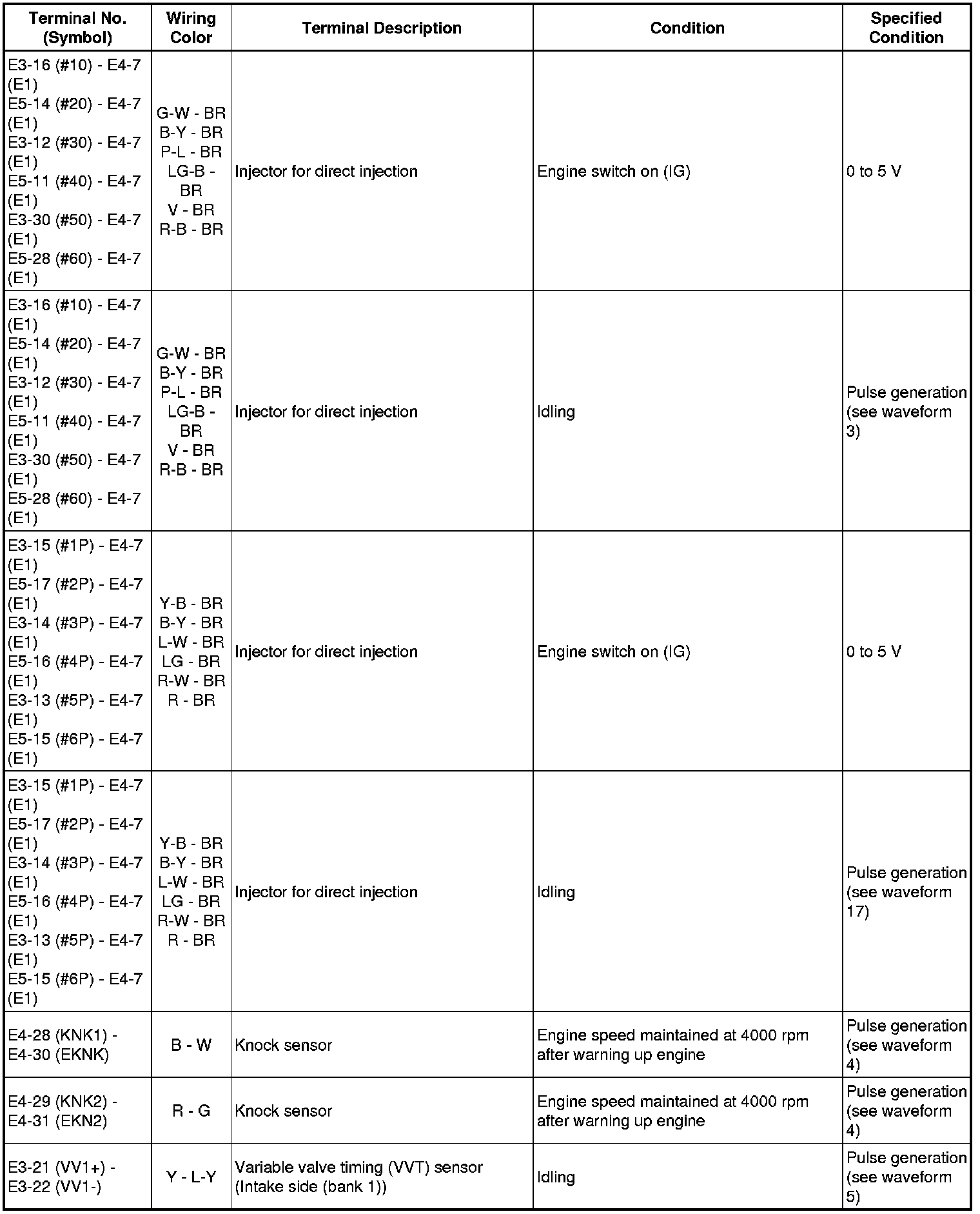 Injector for Direct Injection No. 1 (to No. 6) Injection Signal: