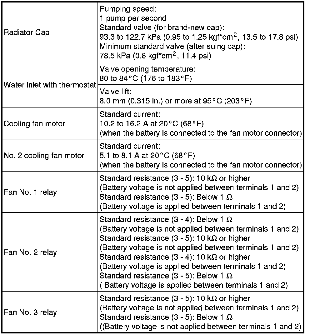 SPECIFICATIONS: 2GR-FSE COOLING: SERVICE DATA