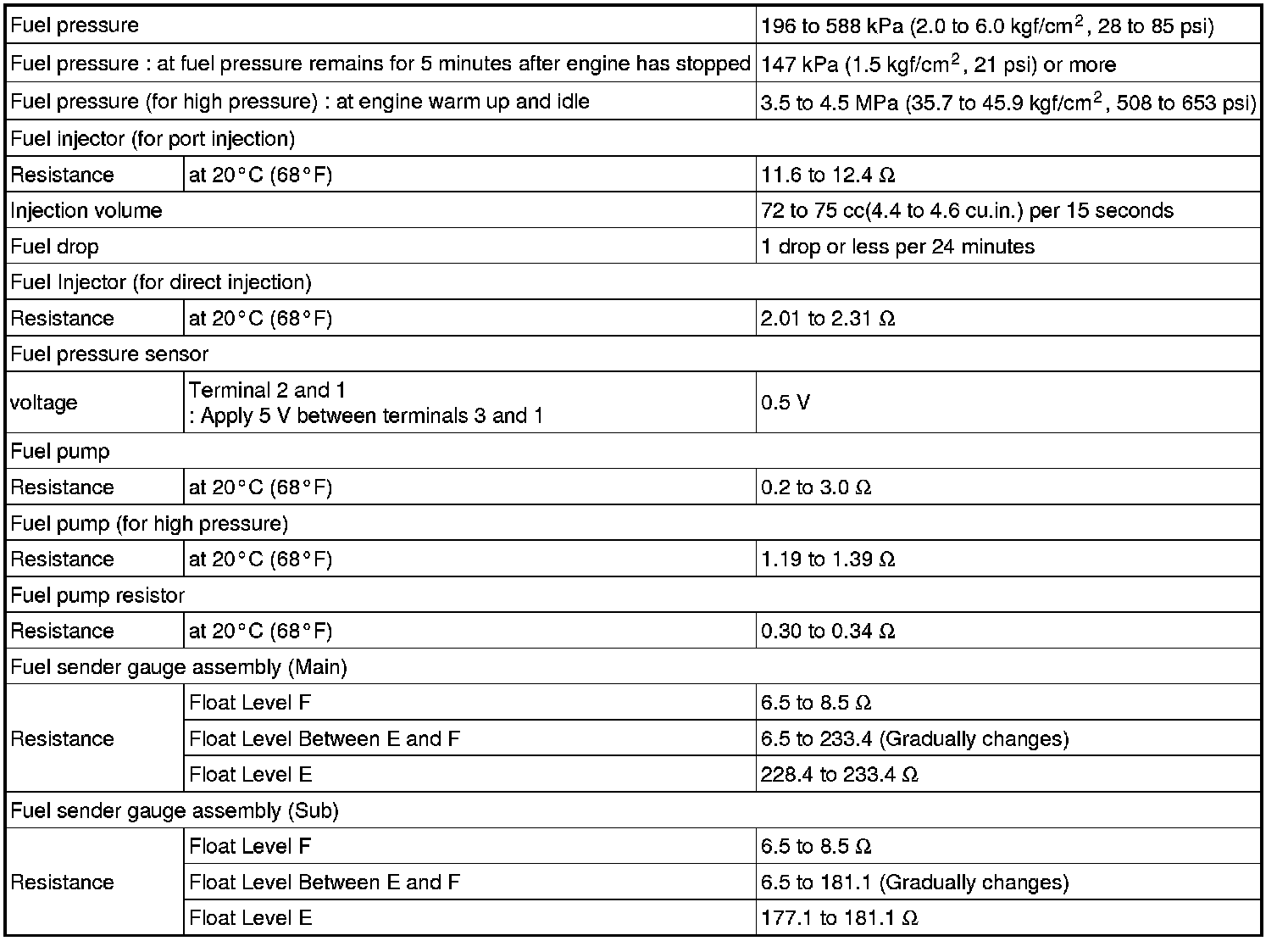 SPECIFICATIONS: 2GR-FSE FUEL: SERVICE DATA