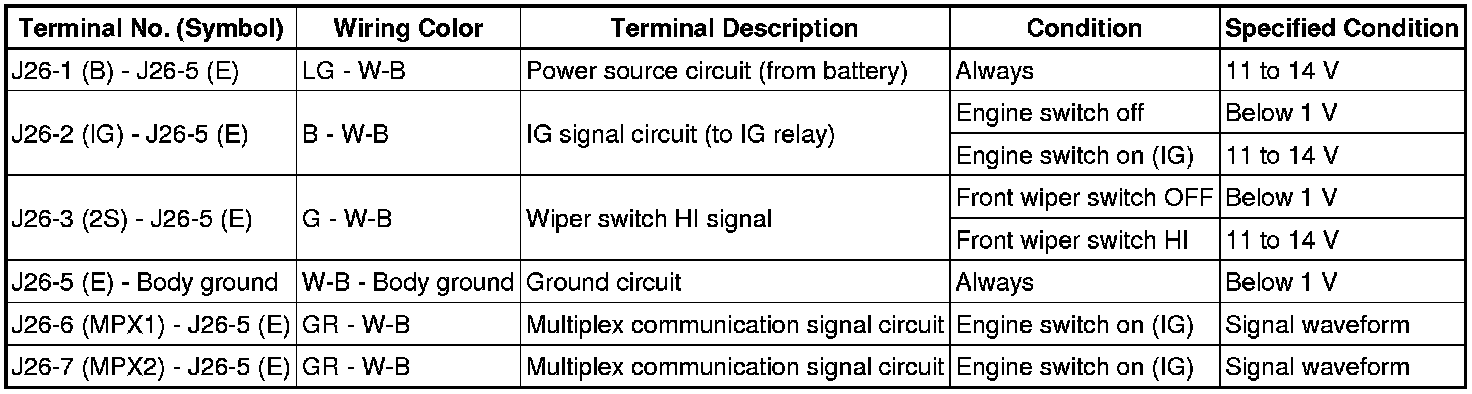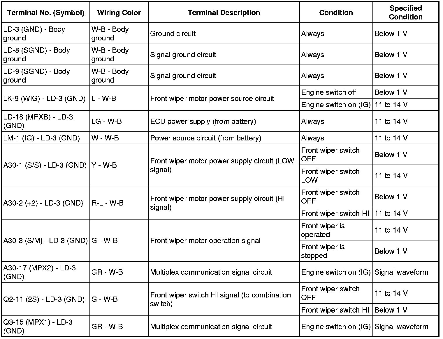 WIPER / WASHER: WIPER AND WASHER SYSTEM: TERMINALS OF ECU