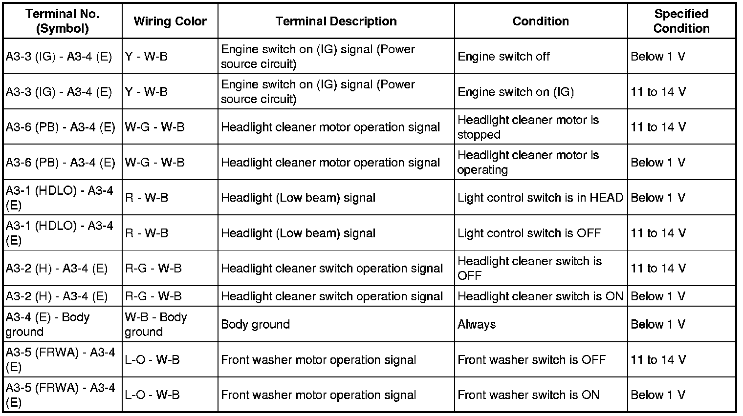 5. CHECK HEADLIGHT CLEANER CONTROL RELAY