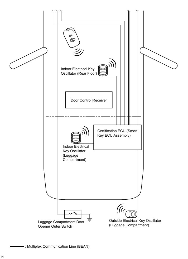 The detection area of the indoor electrical key oscillator (luggage compartment) is formed when the luggage compartment door is closed or the luggage compartment open switch is pressed.