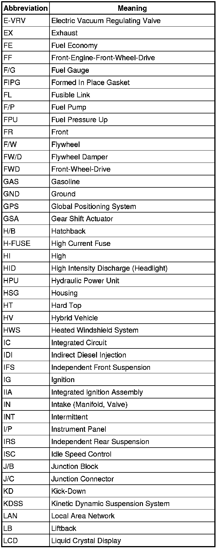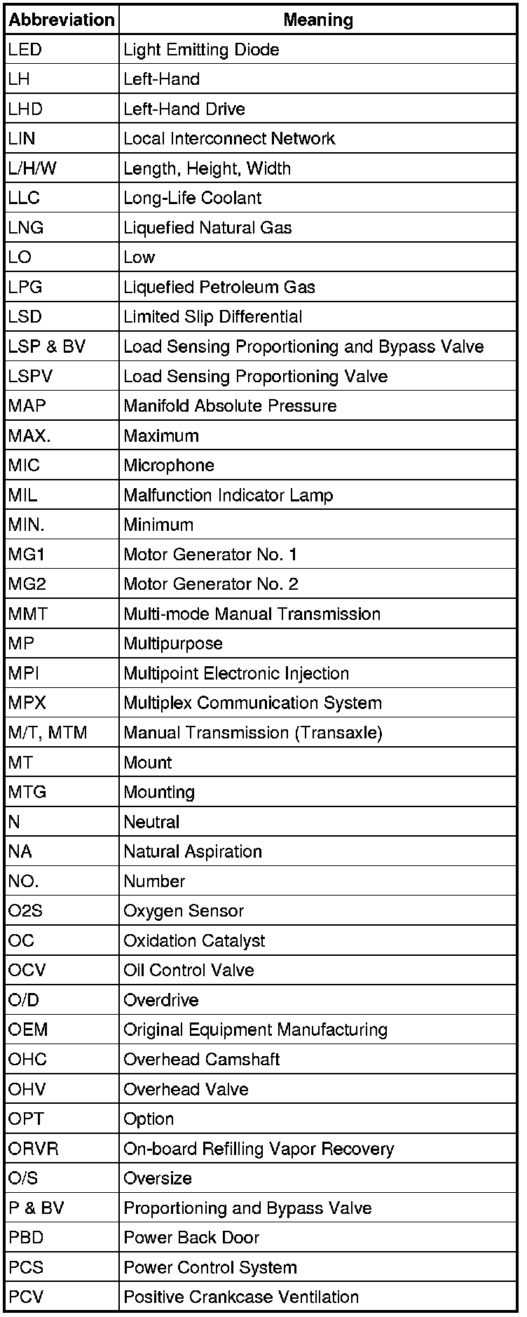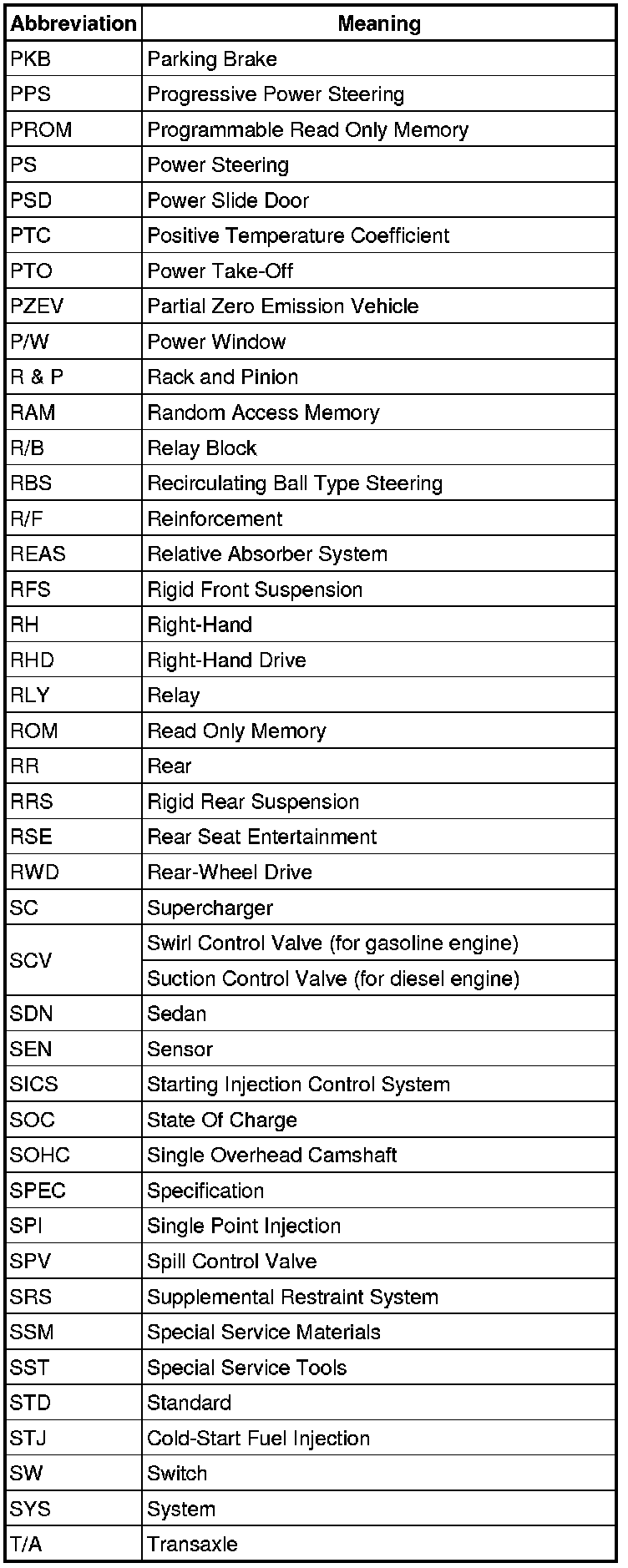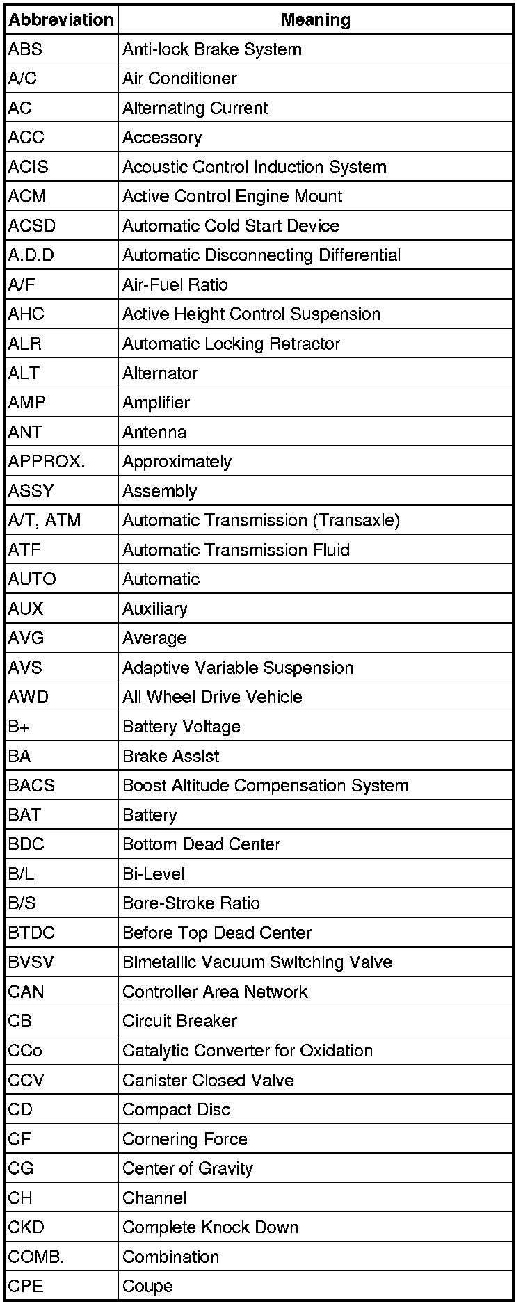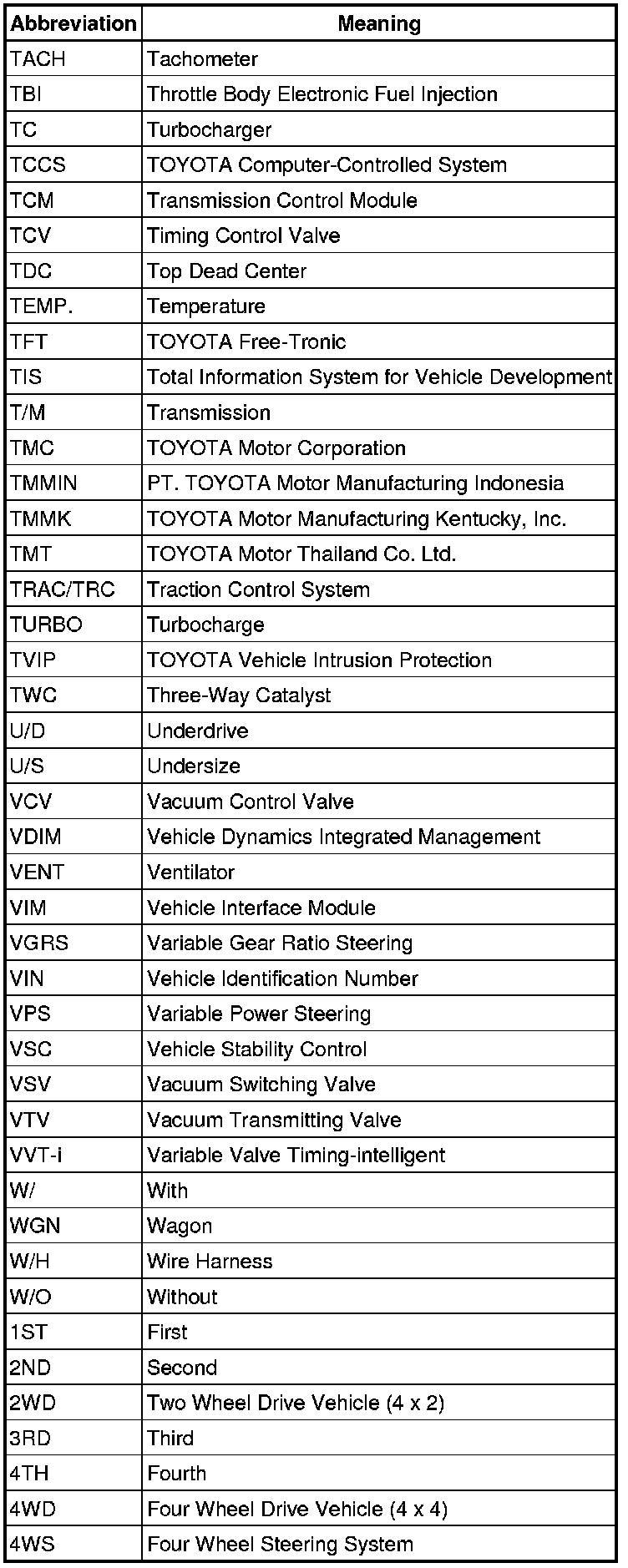 Terms - Abbreviations Used In Service Procedures