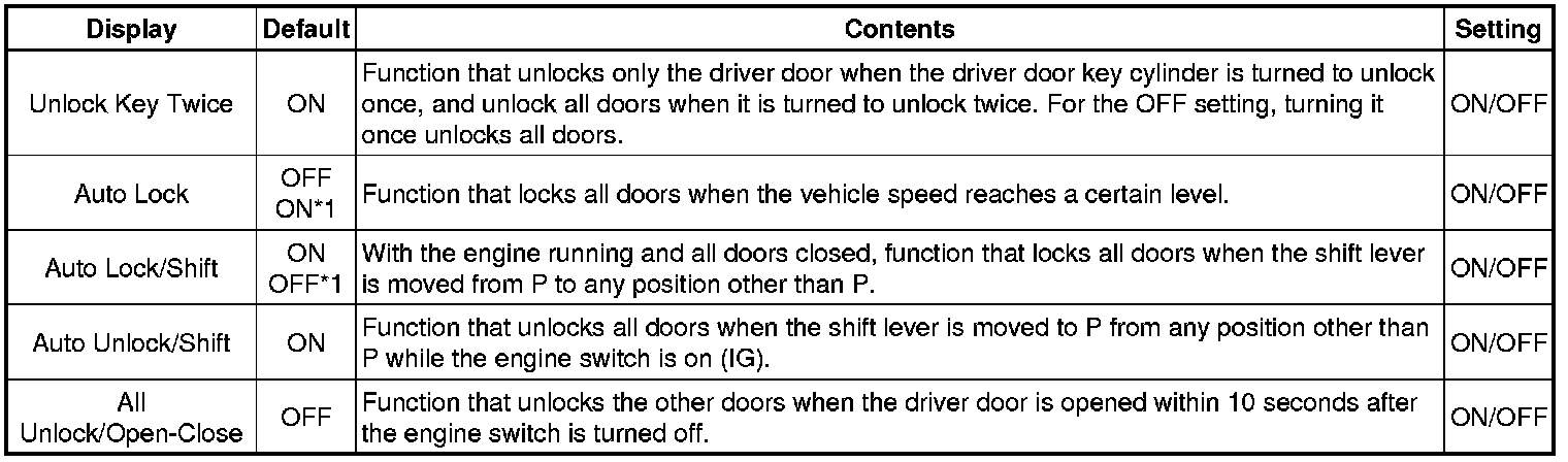 DOOR LOCK: POWER DOOR LOCK CONTROL SYSTEM: CUSTOMIZE PARAMETERS