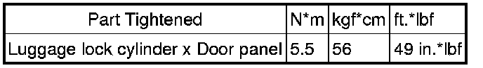 SPECIFICATIONS: DOOR LOCK: TORQUE SPECIFICATIONS