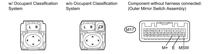 This circuit detects the conditions of the outer mirror switch assembly.