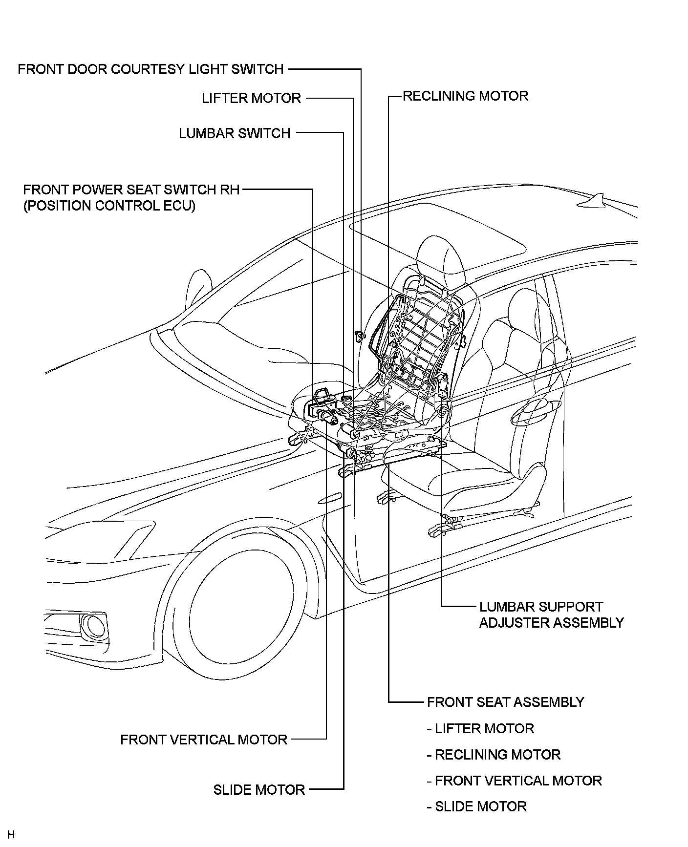 SEAT: FRONT POWER SEAT CONTROL SYSTEM: PARTS LOCATION