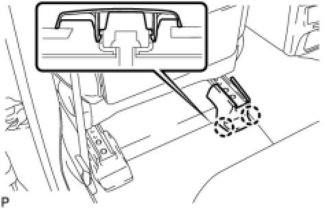 (a) Engage the 2 claws and install the rear inner seat track bracket cover.
