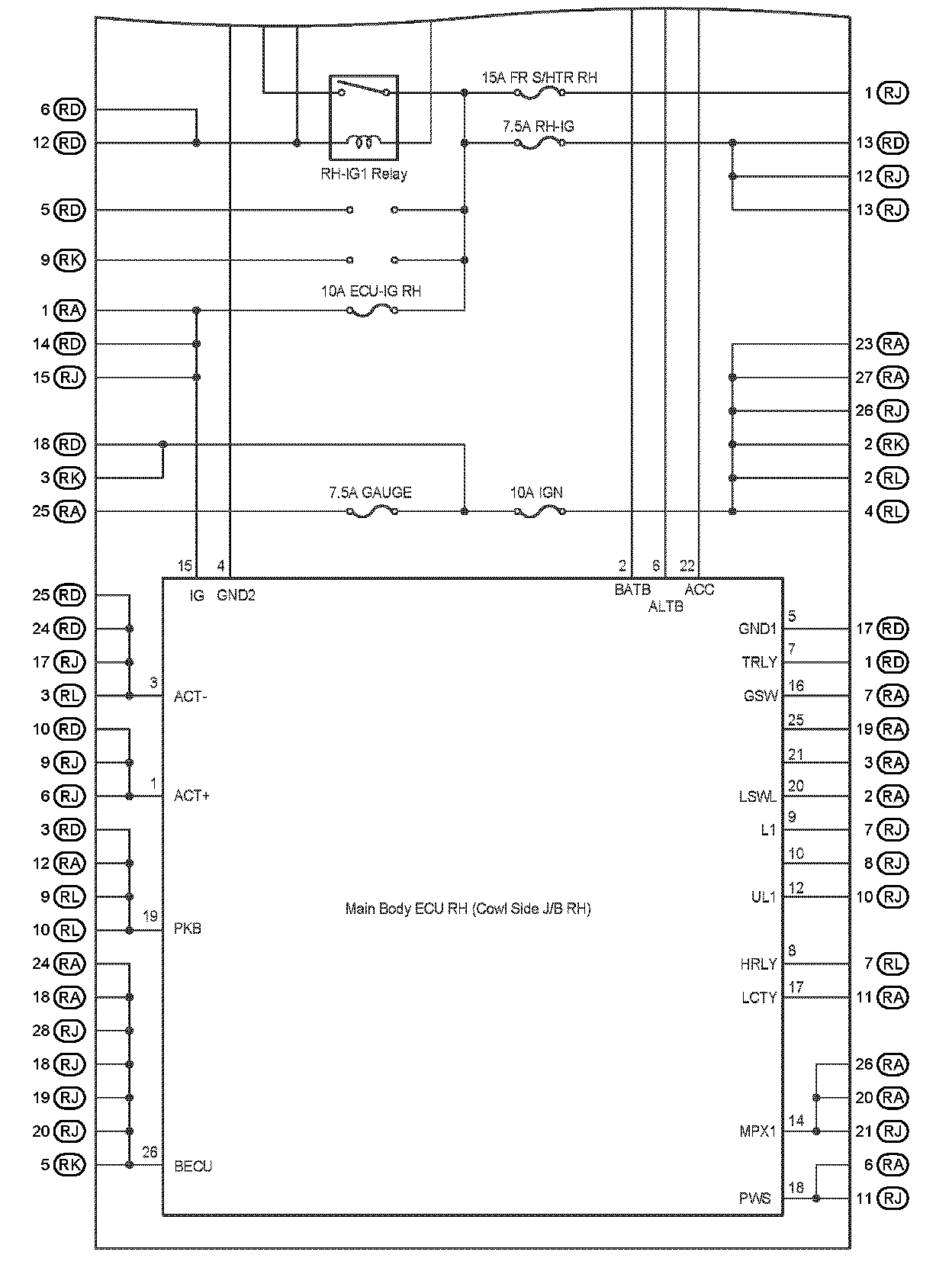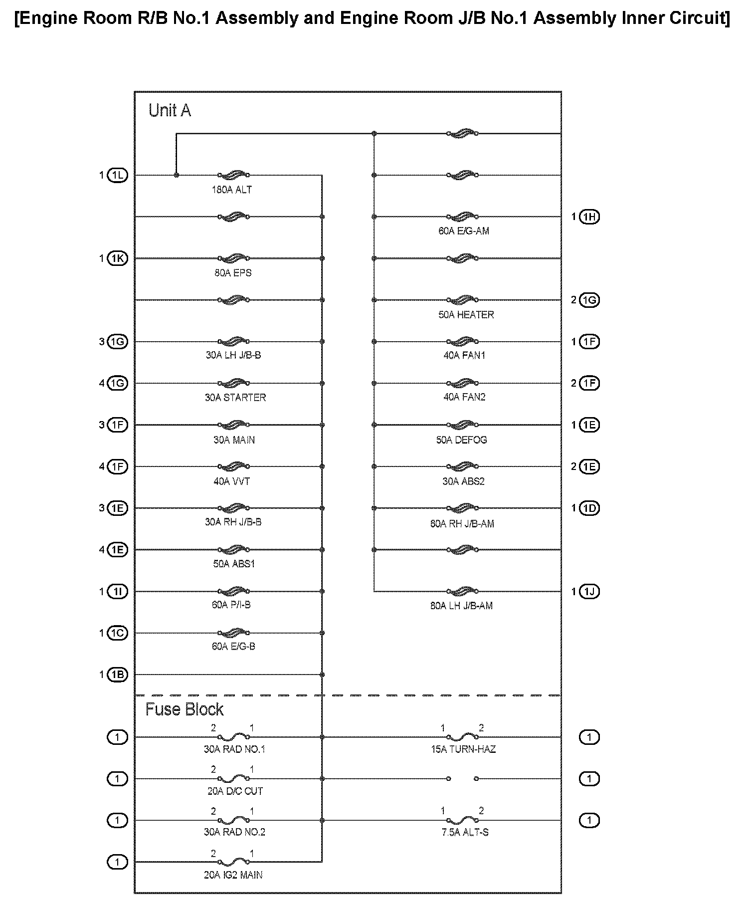 Engine Room R/B No.1 Assembly and Engine Room J/B No.1 Assembly Inner Circuit: