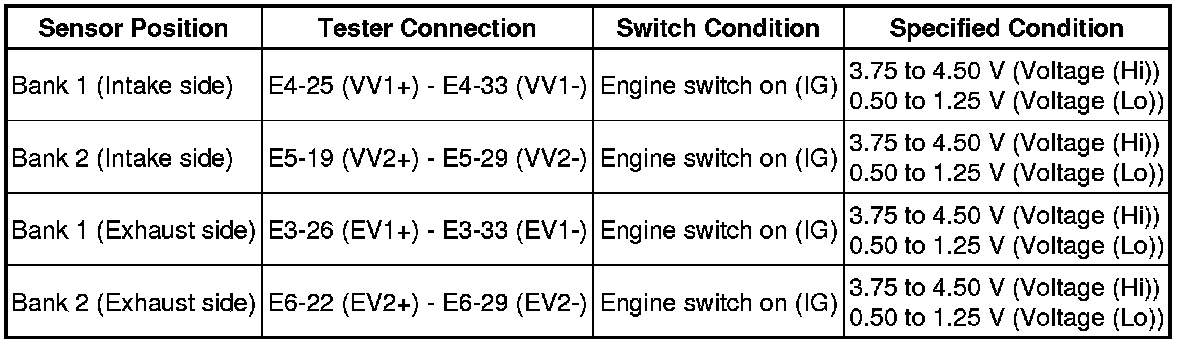 2. CHECK VVT SENSOR OUTPUT VOLTAGE