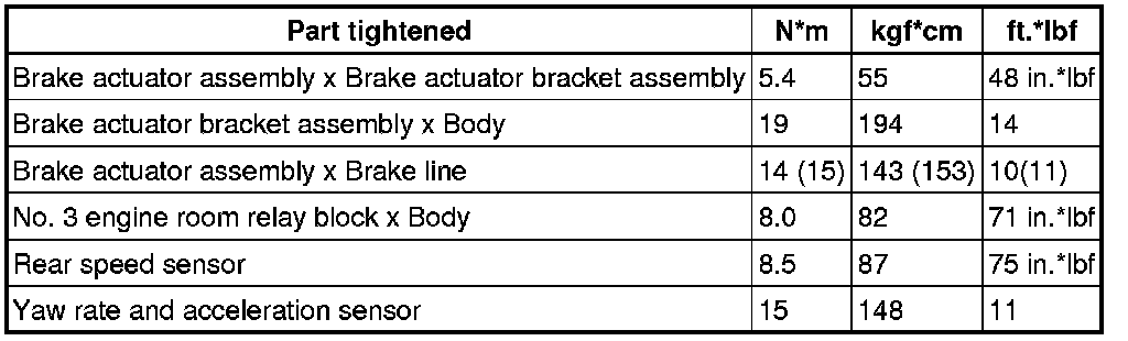 SPECIFICATIONS: BRAKE CONTROL / DYNAMIC CONTROL SYSTEMS: TORQUE SPECIFICATIONS