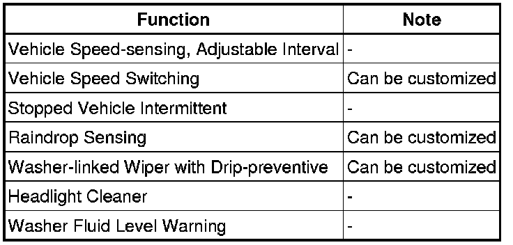 (a) This function controls the intermittent interval of the wipers according to the vehicle speed when the wiper switch is in the AUTO position.