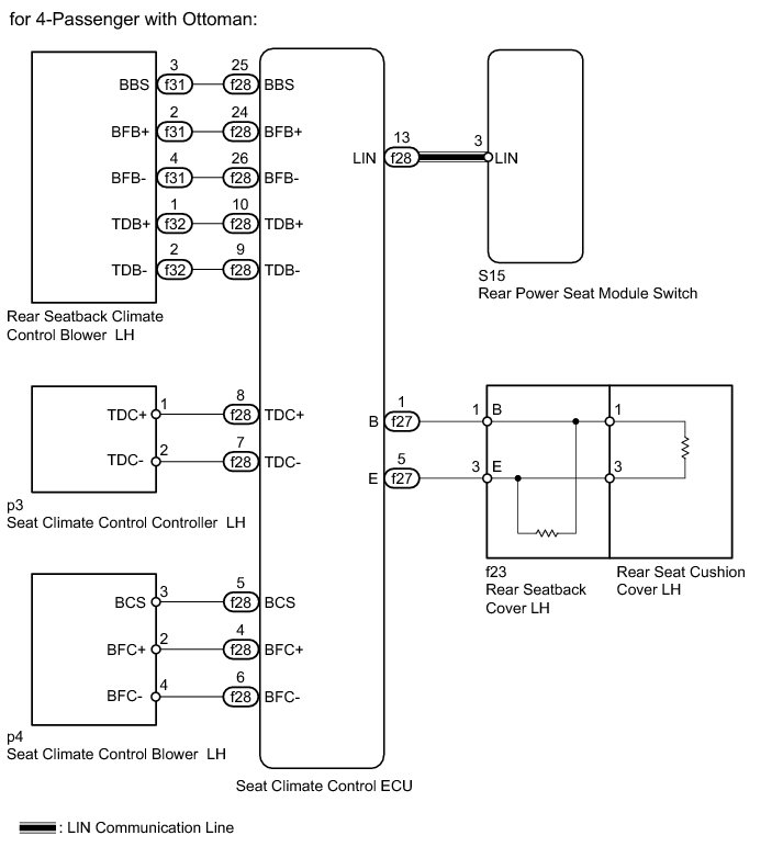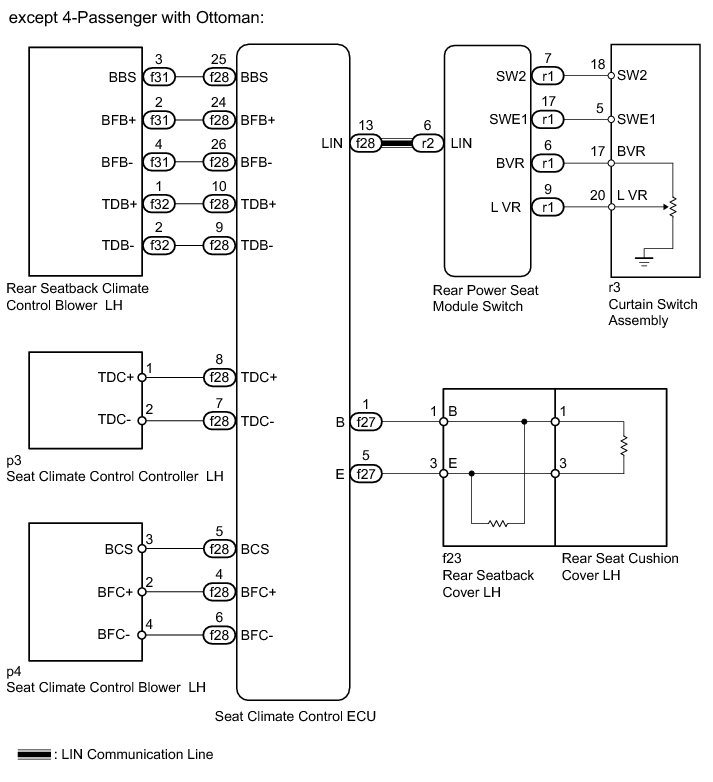 When the curtain switch assembly's* seat heater switch is operated, the rear power seat switch receives the signal. The rear power seat switch then sends the signal to the seat climate control ECU through LIN communication. The seat climate control ECU receives the signal and operates the air seat.