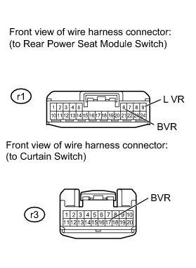 21. CHECK HARNESS AND CONNECTOR (REAR POWER SEAT MODULE SWITCH - CURTAIN SWITCH)