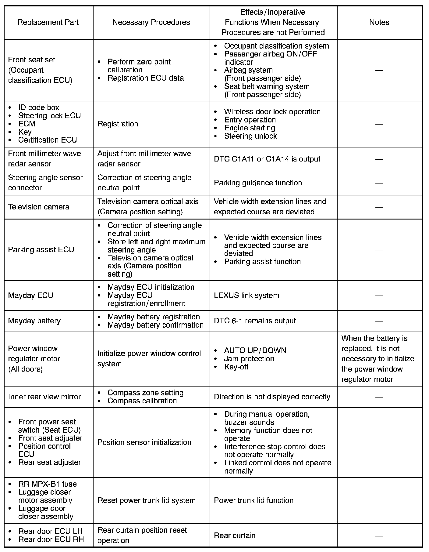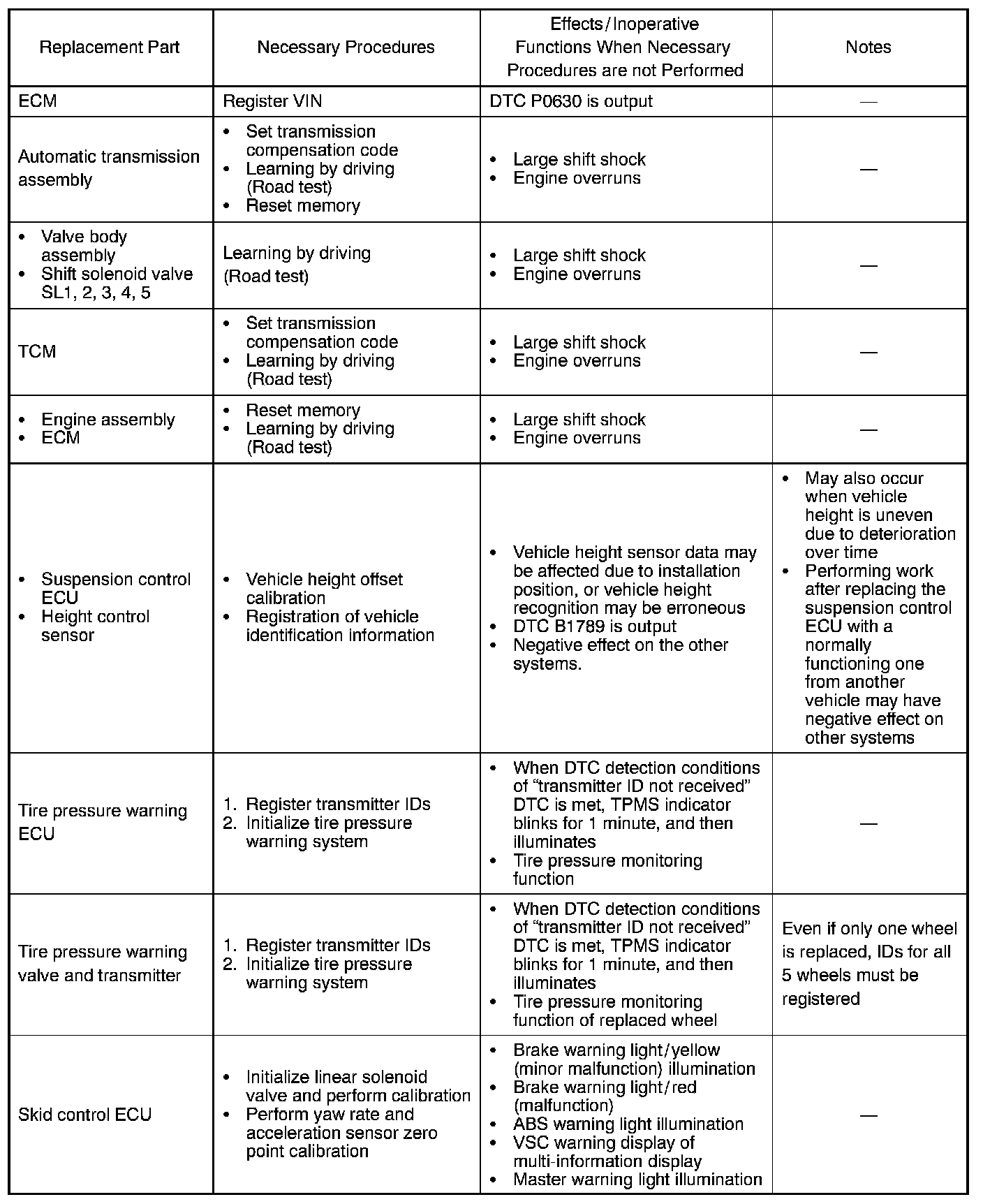 Procedures Necessary When ECU Or Other Parts Are Replaced