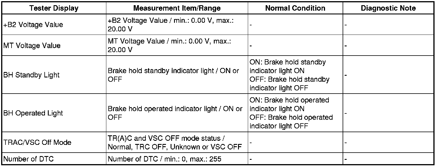 Using the Techstream to read the Data List allows the values or states of switches, sensor, actuators and other items to be read without removing any parts. This non-intrusive inspection can be very useful because intermittent conditions or signals may be discovered before parts or wiring is disturbed. Reading the Data List information early in troubleshooting is one way to save diagnostic time.