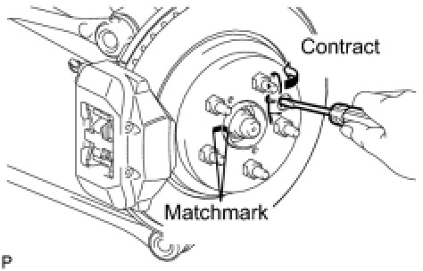 (d) Using a screwdriver, turn the adjusting screw of the parking brake shoe in the expansion direction until the disc locks.