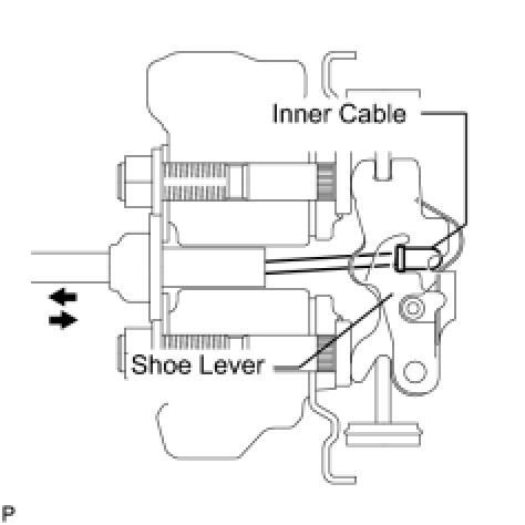 (c) Check that the parking brake inner cable and parking brake shoe lever are securely connected by trying to pull them apart.