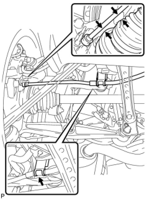 With the vehicle on the ground, check that the gap between the parking brake cable and drive shaft, and the gap between the parking brake cable and shaft boot are 10 mm (0.394 in.) or more.