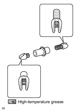 (a) Apply a light coat of high-temperature grease to the thread and all joining areas of the parking brake shoe adjusting screw set.