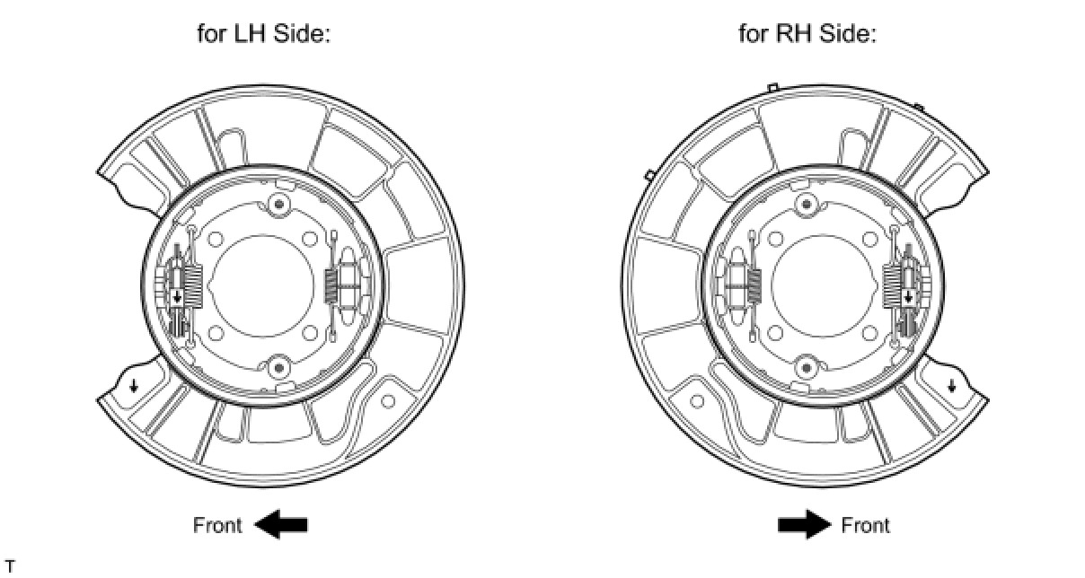 Take care to install the correct parking brake shoe lever because the direction of the pin is different between the left and right.