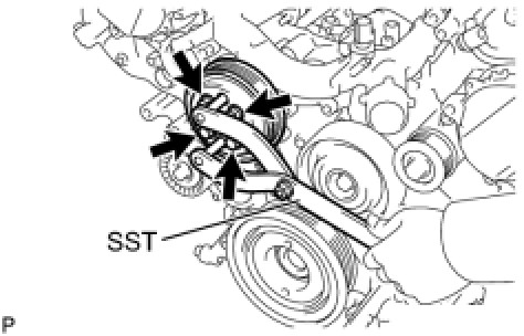 (b) Using SST, hold the pulley and tighten the 4 bolts.