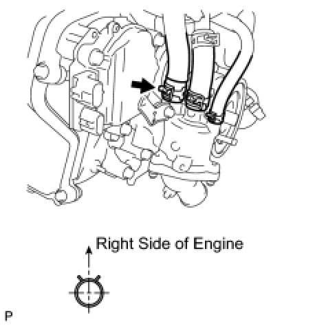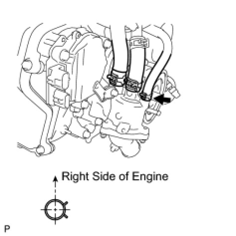 (a) Using needle-nose pliers, grip the claws of the clip and slide the clip to connect the No. 3 water by-pass hose.