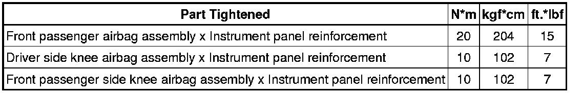 SERVICE SPECIFICATIONS: INSTRUMENT PANEL: TORQUE SPECIFICATIONS