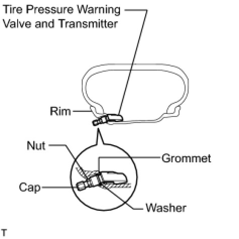 * If the tire and tire pressure warning valve have been removed, replace the grommet with a new one.