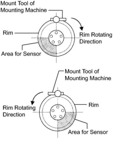 * If the tire pressure warning valve and transmitter is installed in the reverse direction, it may be damaged or fail to transmit signals when running at high speeds.