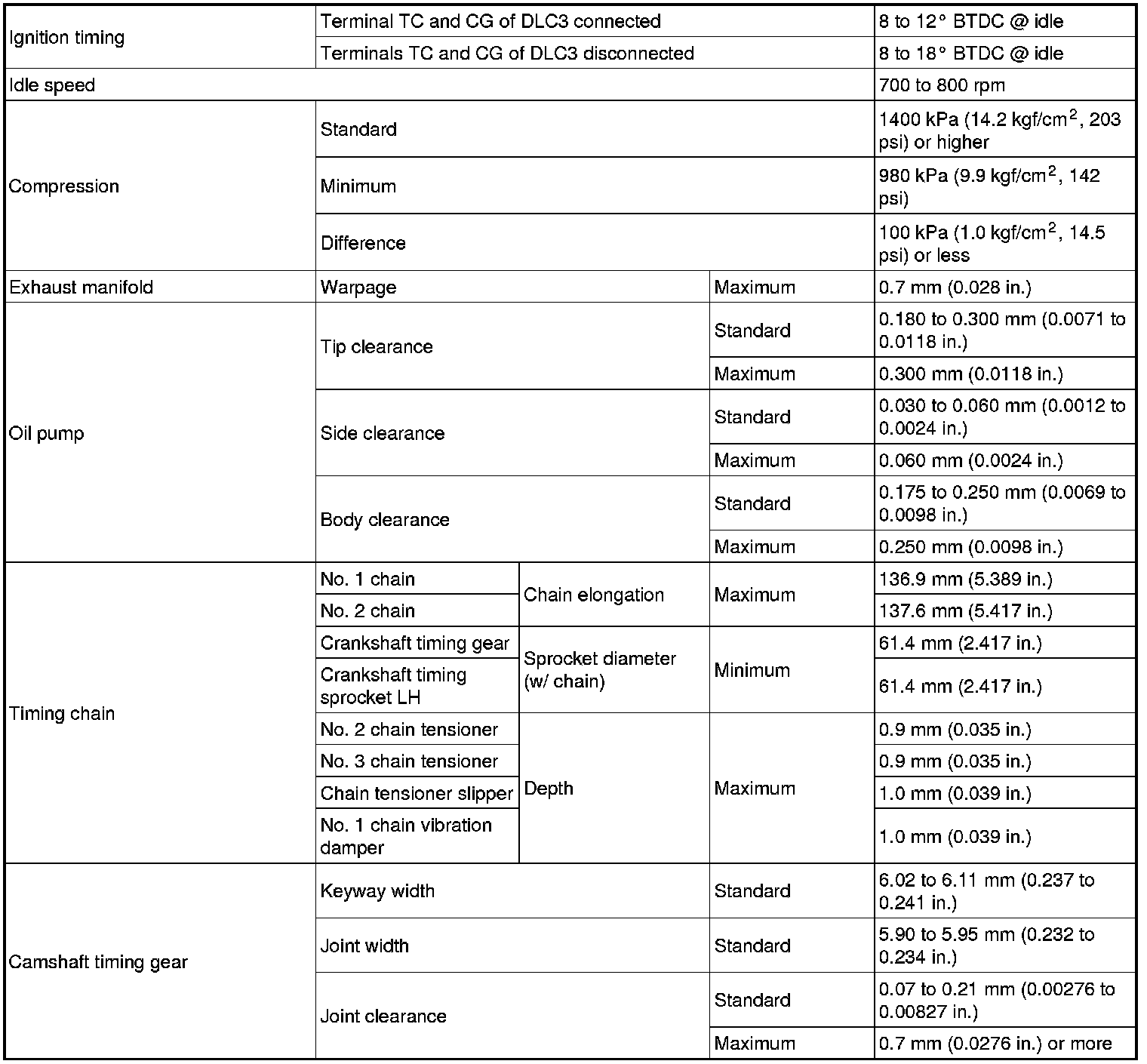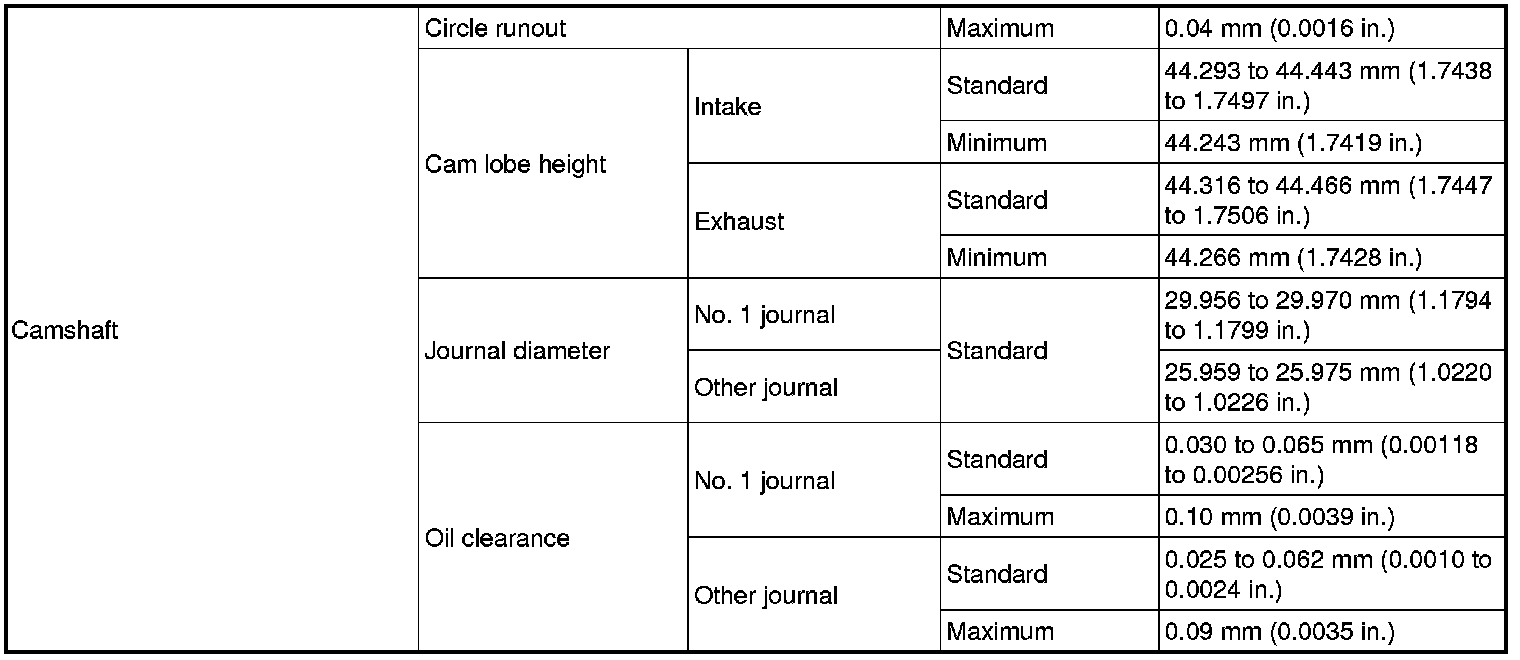 SERVICE SPECIFICATIONS: 1UR-FSE ENGINE MECHANICAL: SERVICE DATA