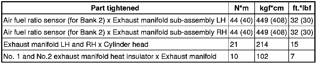 SERVICE SPECIFICATIONS: 1UR-FSE EXHAUST: TORQUE SPECIFICATIONS