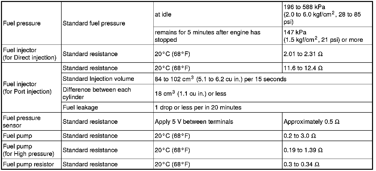 SERVICE SPECIFICATIONS: 1UR-FSE FUEL: SERVICE DATA