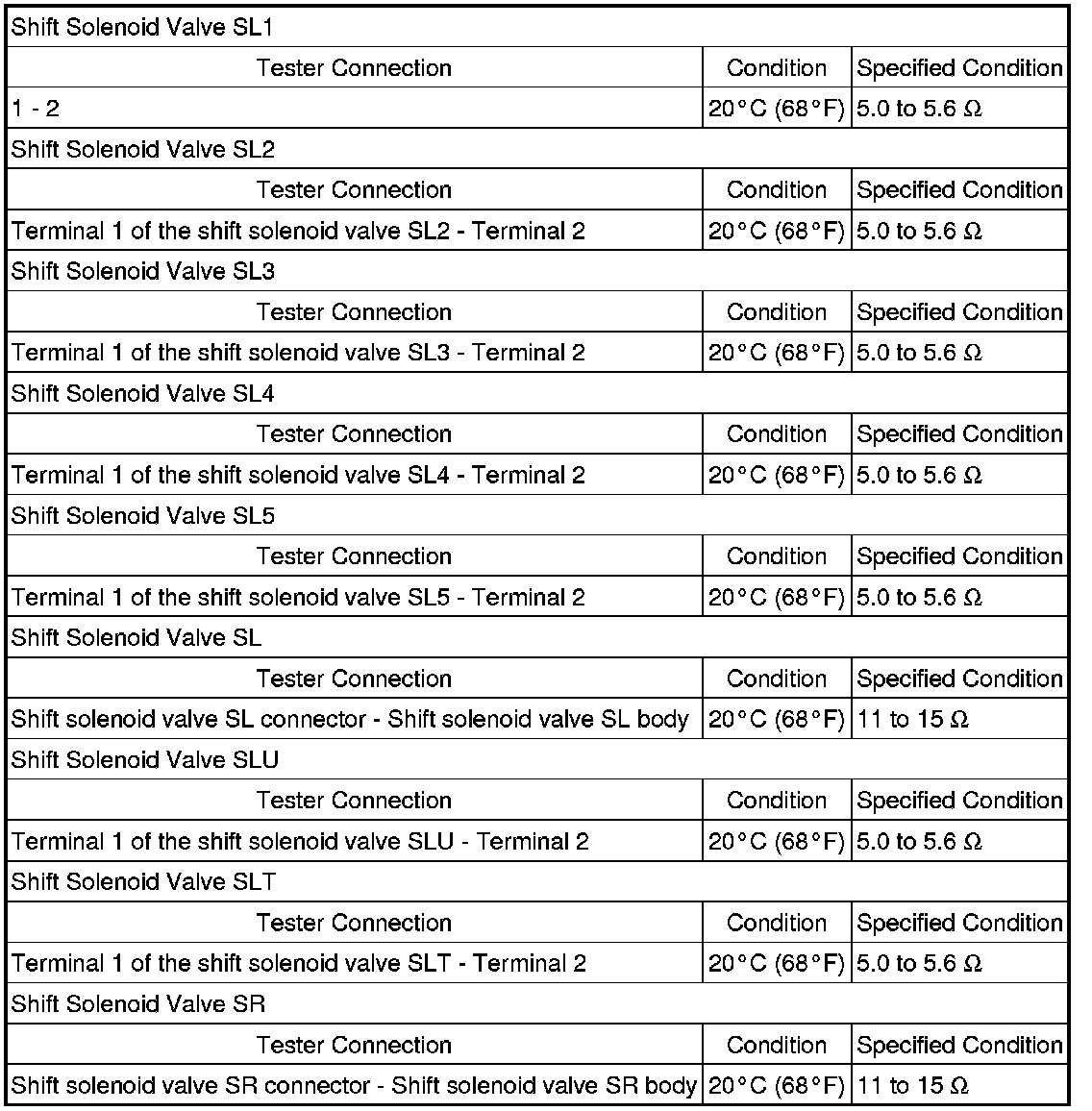 SERVICE SPECIFICATIONS: AA80E AUTOMATIC TRANSMISSION: SERVICE DATA