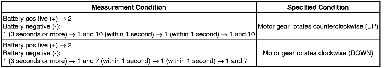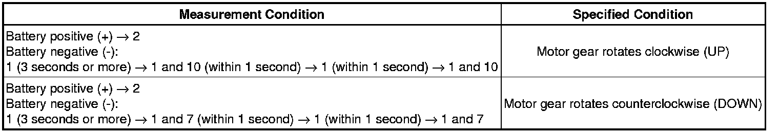 If the result is not as specified, replace the regulator motor assembly.
