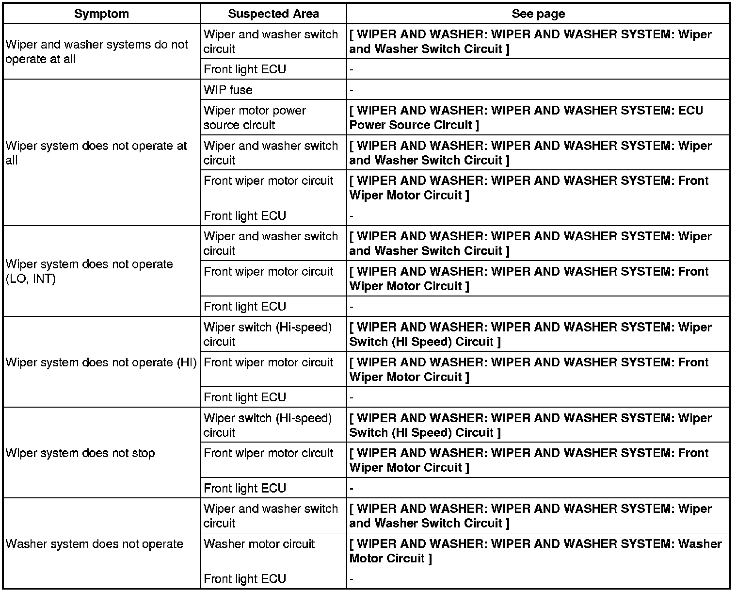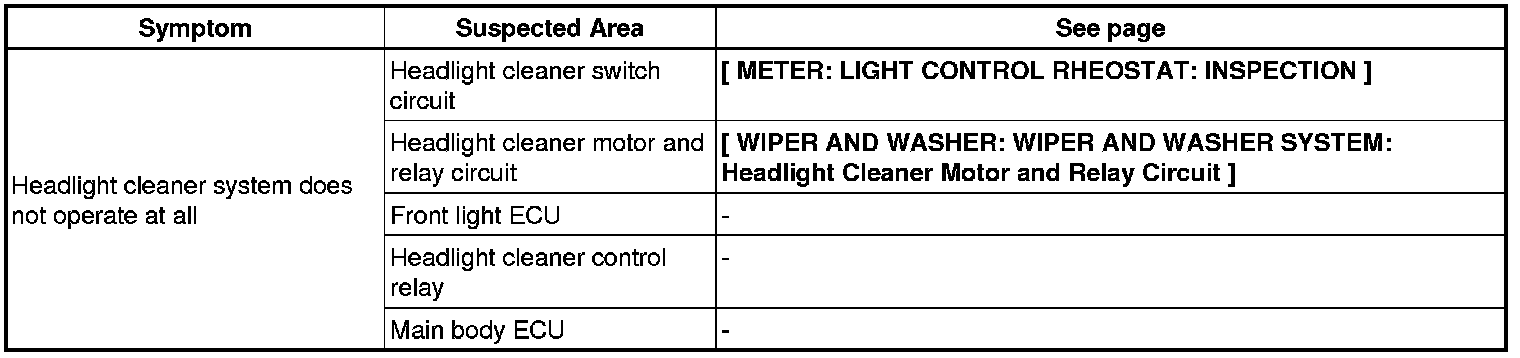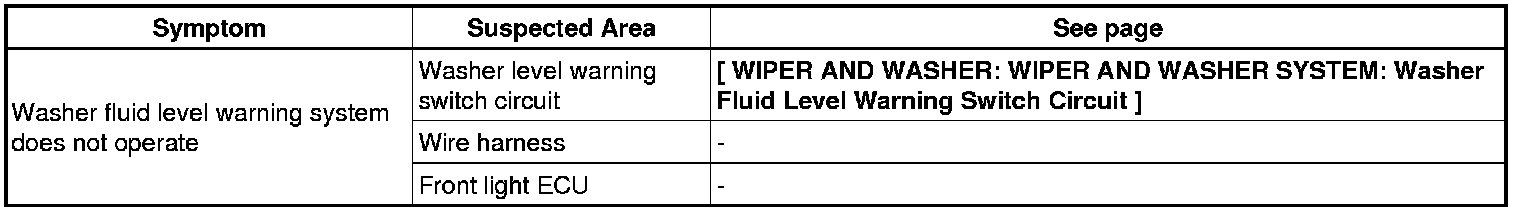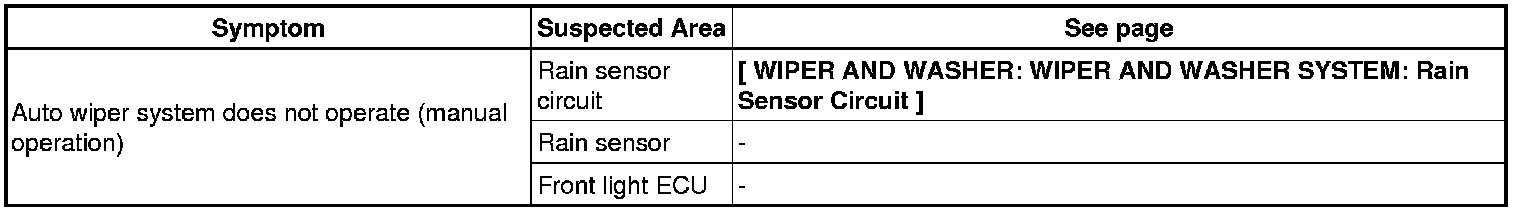 WIPER AND WASHER: WIPER AND WASHER SYSTEM: PROBLEM SYMPTOMS TABLE
