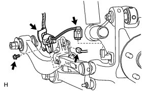 * The rear speed sensor is easily damaged. When installing the rear speed sensor to the rear axle hub RH, do not use excessive force to rotate and install it.