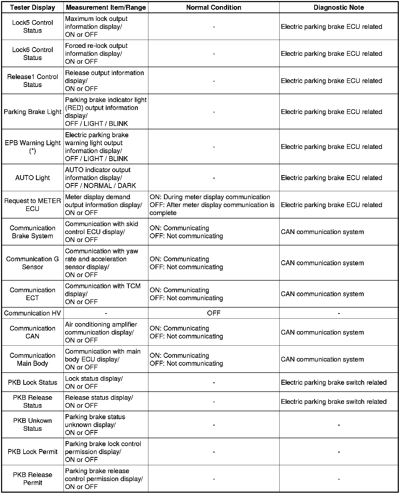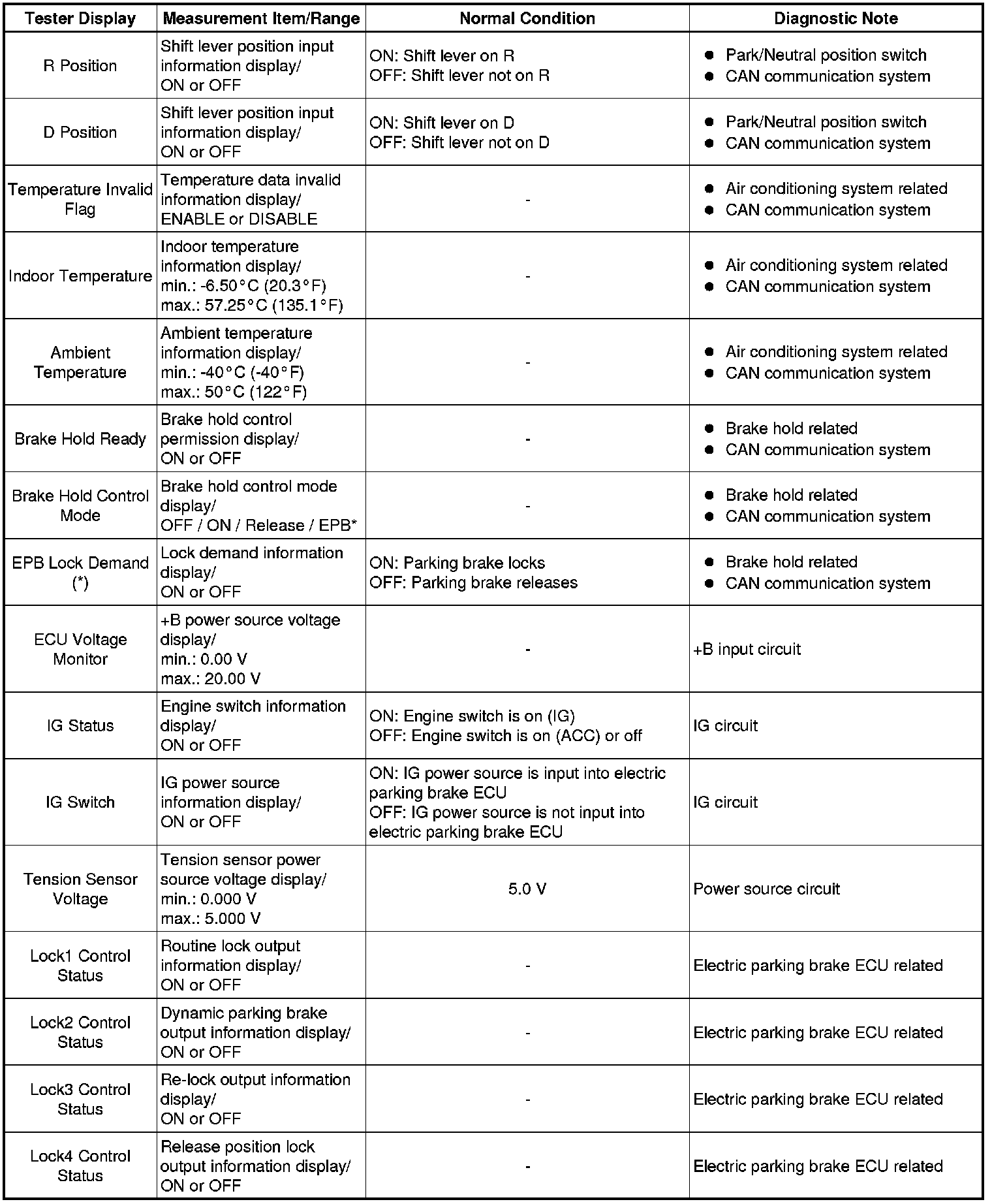 PARKING BRAKE: ELECTRIC PARKING BRAKE SYSTEM: DATA LIST / ACTIVE TEST
