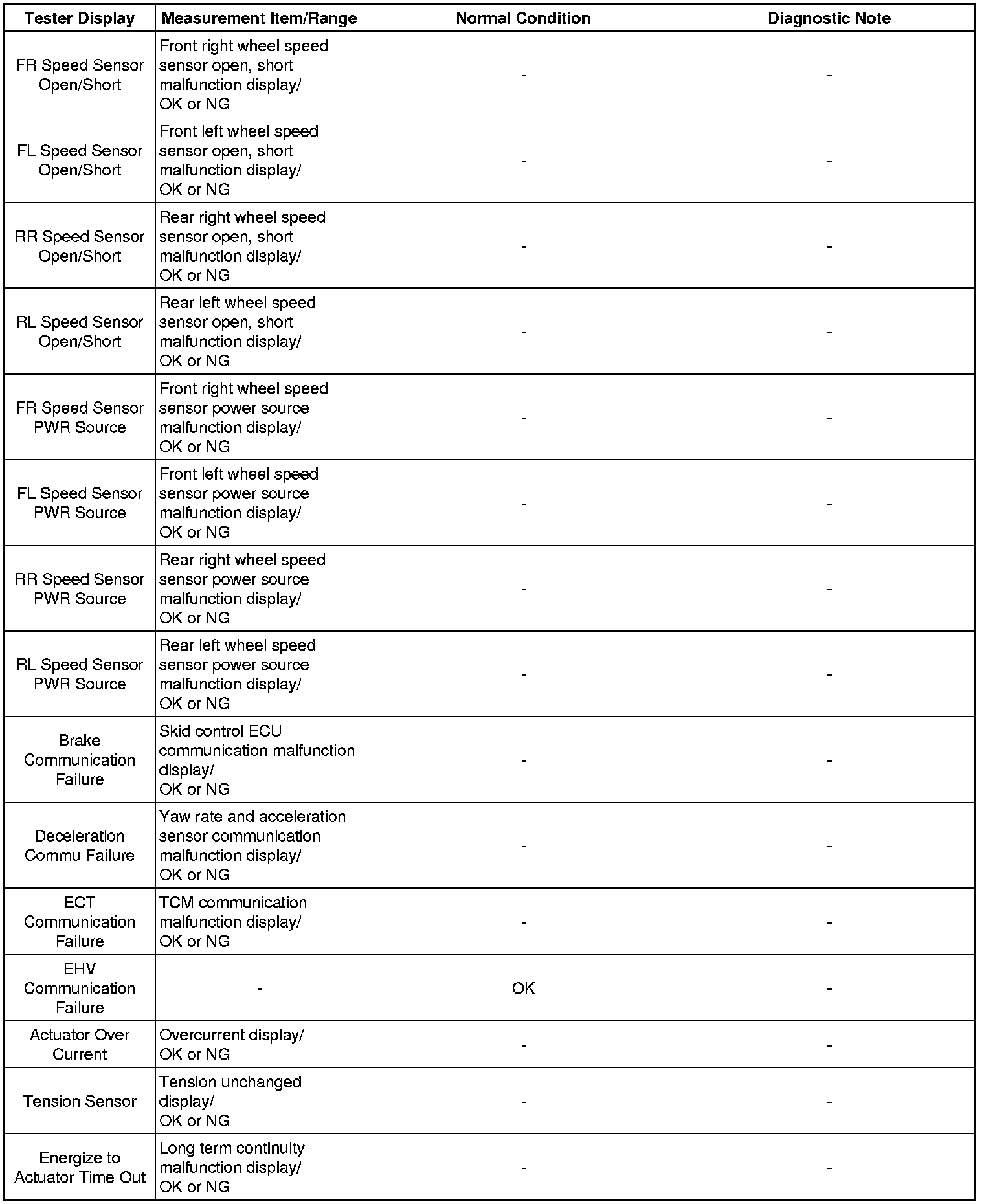 In the table below, the values listed under "Normal Condition" are reference values. Do not depend solely on these reference values when deciding whether a part is faulty or not.