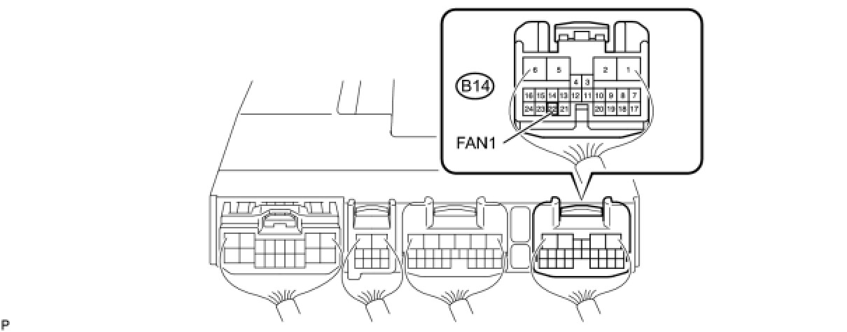 (1) Set the oscilloscope probe to the terminal B14-22 (FAN1) of the front controller.