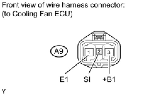 (c) Check the resistance of the wire harness between the front controller B14-22 (FAN1) and cooling fan ECU A9-2 (SI).